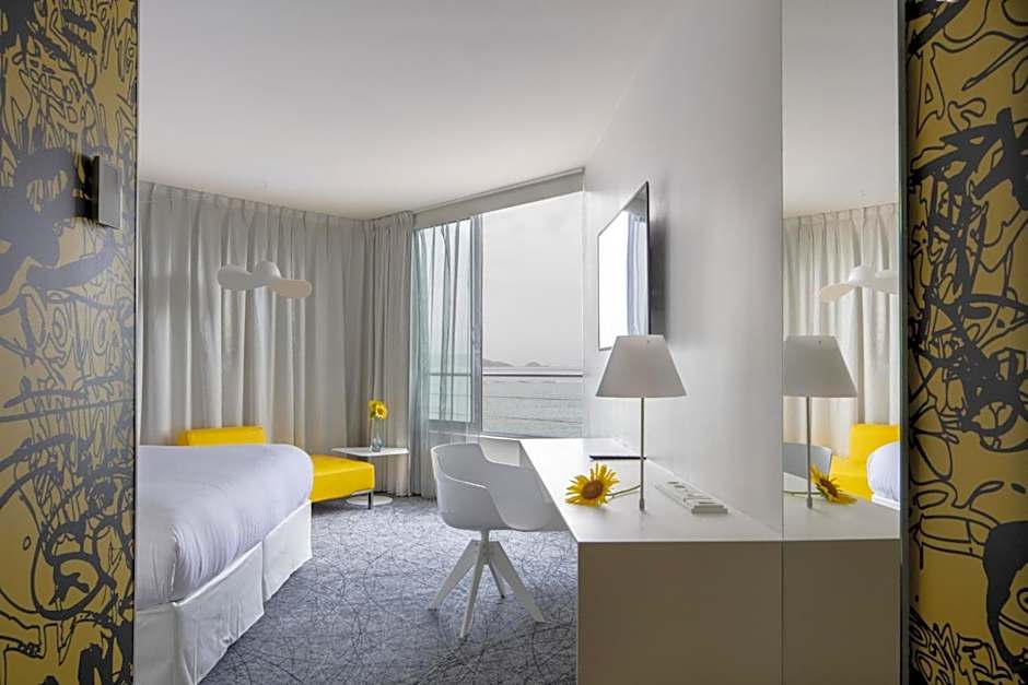 NHOW SEA VIEW is 172 square feet and includes a king-size bed 150-183 width plus bathrobes and is Wheelchair-accessible.